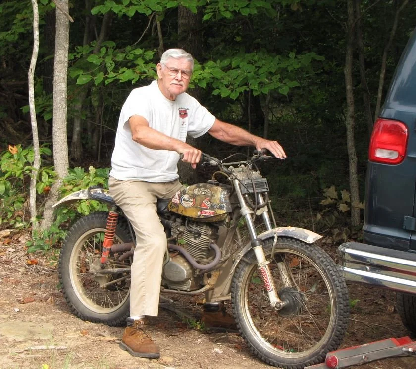 Pate Keen is my hero. At the age of 75 and a half, he is still “kicking ass and taking names” at trials events up and down the eastern half of the U.S. At every event he goes to, he usually finds dozens of riders gunning for him – trying to see if they can beat “the old man.’ Most them can’t, even though they are 20 to 55 years younger – “kids” as he calls them.